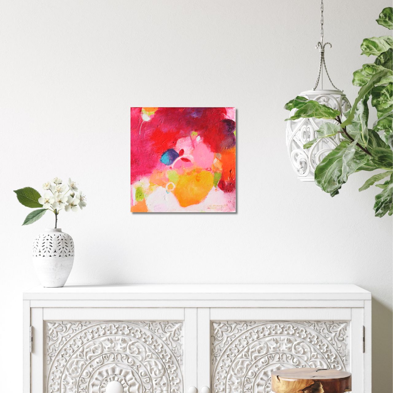 Auch der Versand des großen Bildes (immerhin 1m x 1,40m) ging problemlos. Die Kommunikation war schnell, zuverlässig und sehr sympathisch und so hatten wir nach unserer Entscheidung in Kürze das Bild „in echt“ vor uns und an der Wand hängen. Dort hängt es nun und strahlt uns an … und wir strahlen zurück!“ ♥