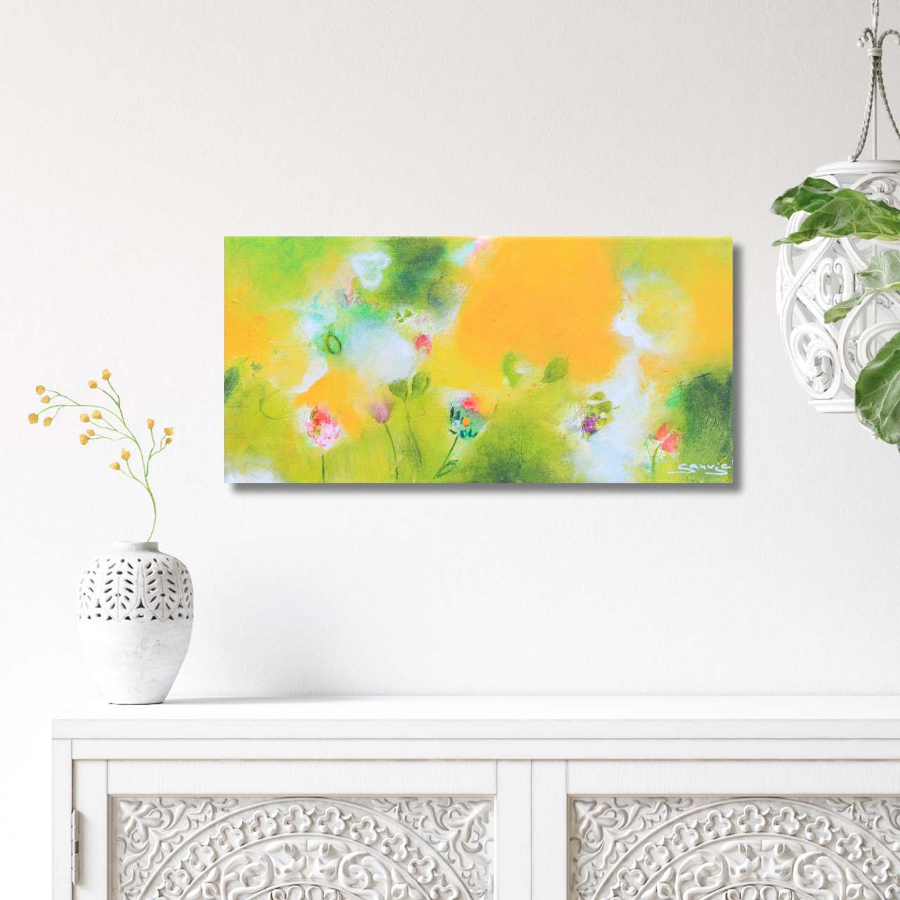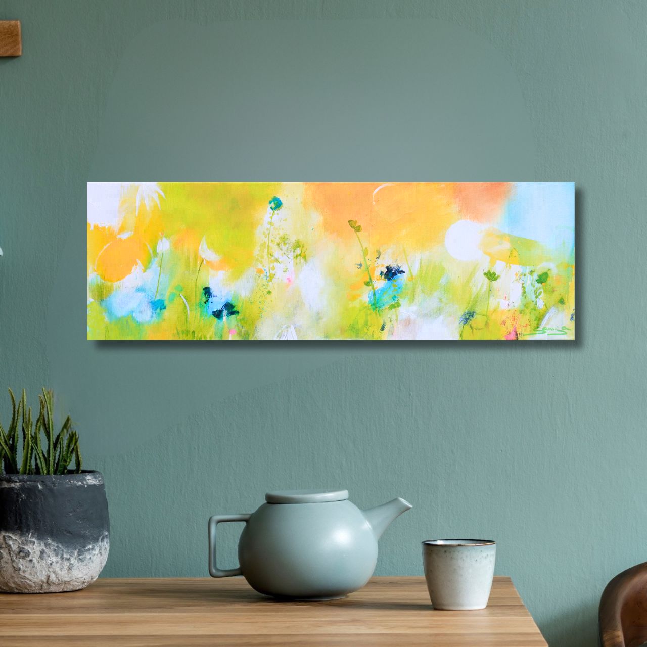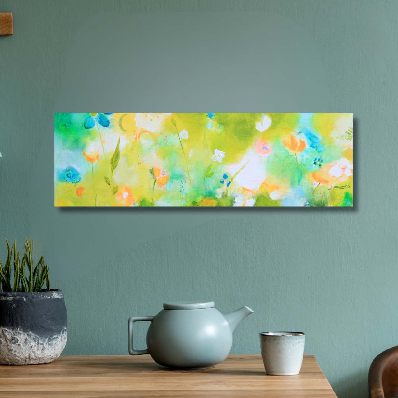 Auch der Versand des großen Bildes (immerhin 1m x 1,40m) ging problemlos. Die Kommunikation war schnell, zuverlässig und sehr sympathisch und so hatten wir nach unserer Entscheidung in Kürze das Bild „in echt“ vor uns und an der Wand hängen. Dort hängt es nun und strahlt uns an … und wir strahlen zurück!“ ♥